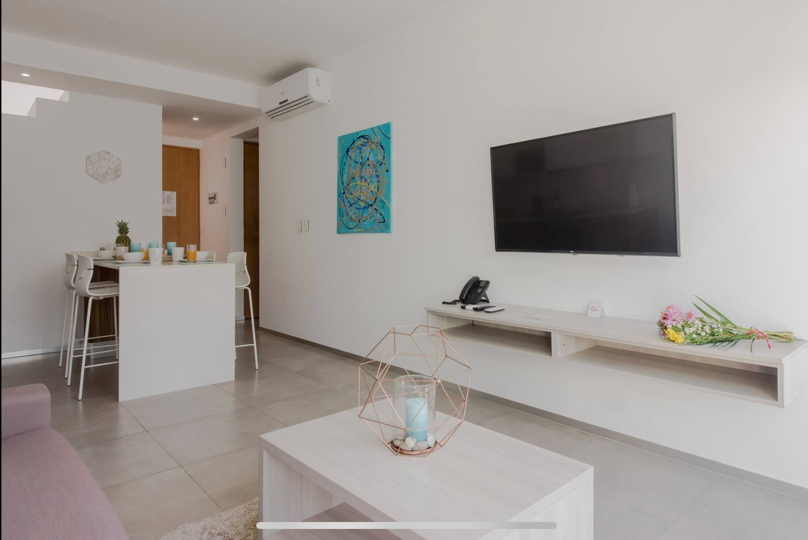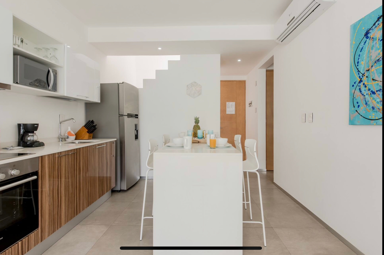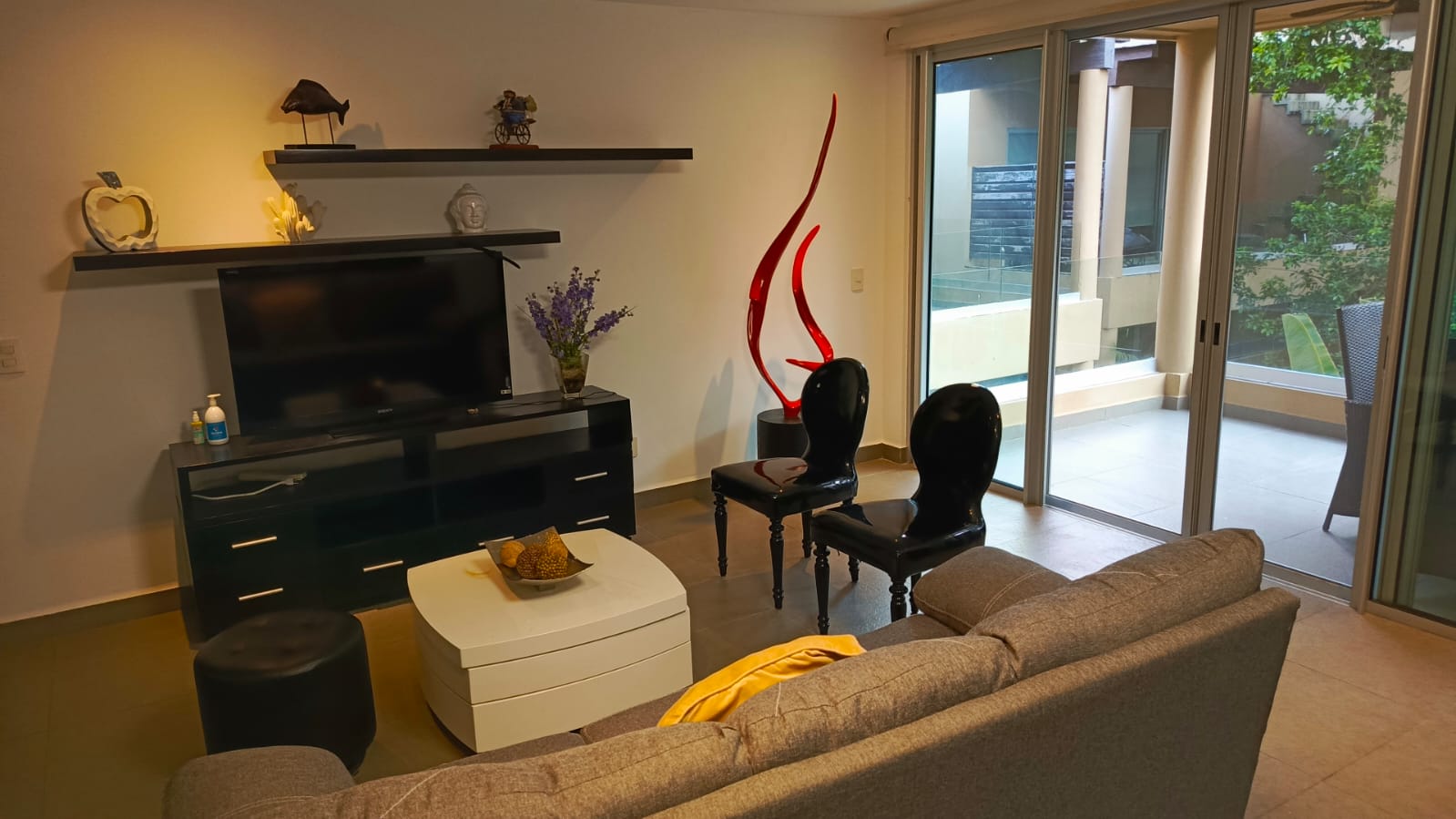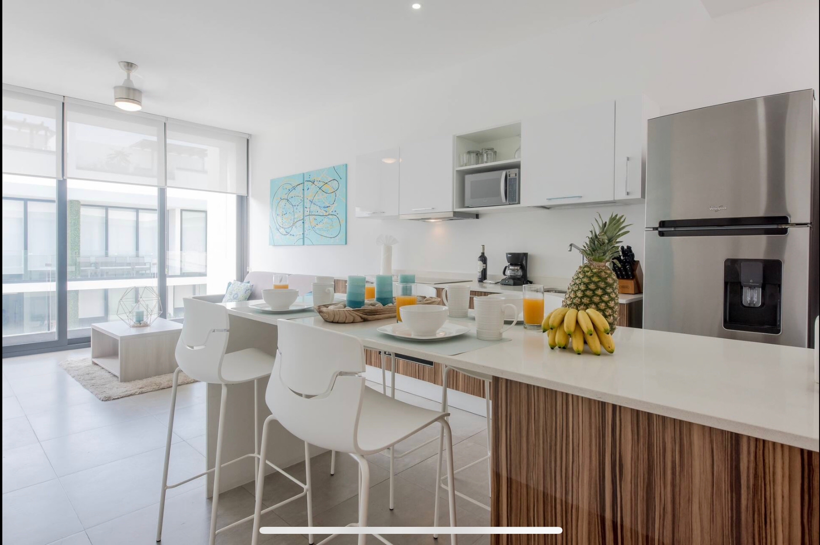 Caracteristicas: 1 recamara con closet / Cama king / Sofá cama / Cocina integral / Equipado 2 a/a aires acondicionados / Estacionamiento techado / Balcon / Terraza particular / Piscina particular